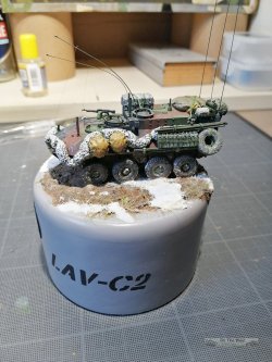 | This is the LAV-C2 by Trumpeter. Wheels are from Armory model. Black Dog & T-Model provided the accessories and the antenna base is from emp3d. |